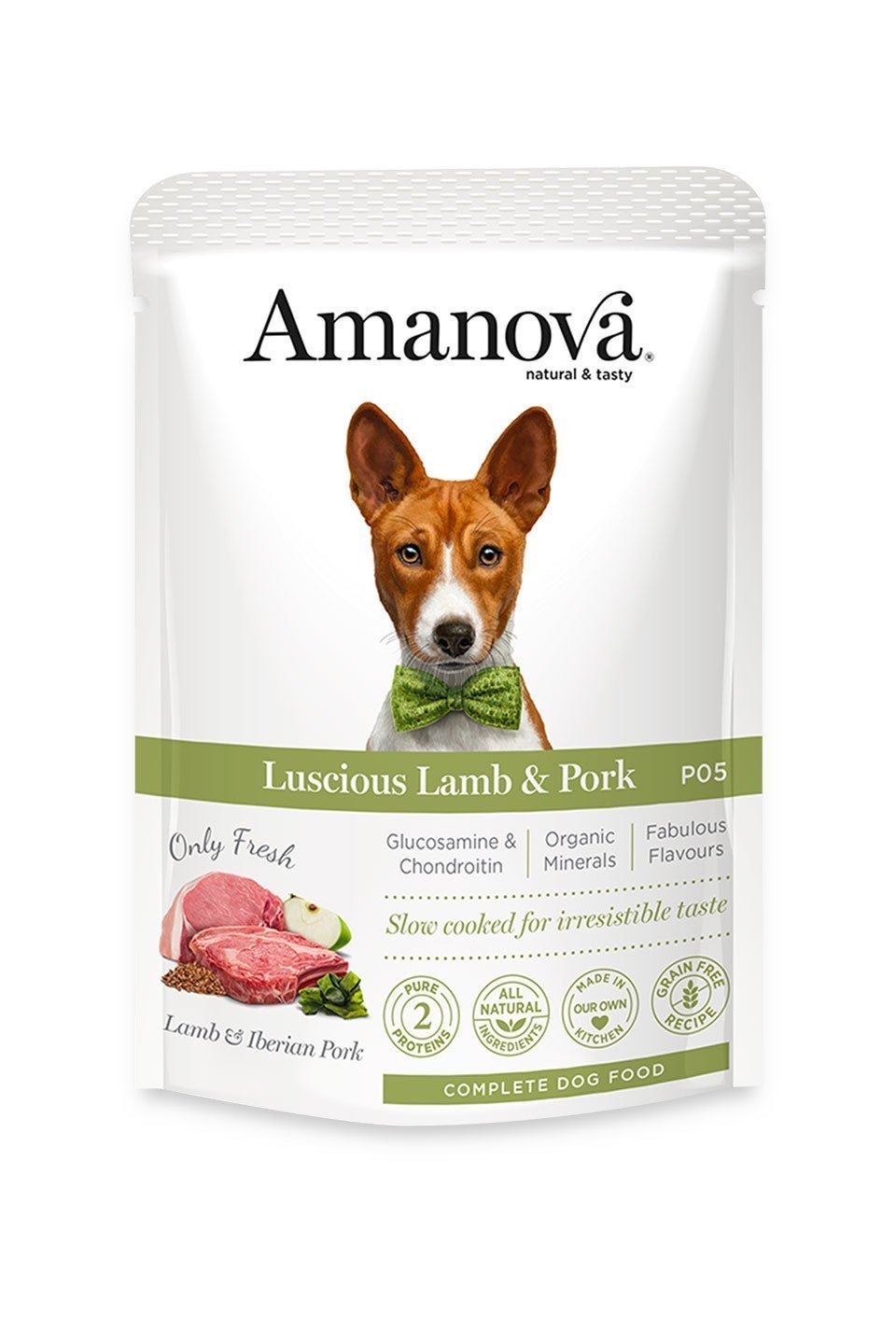 Amanova Grain Free Adult Dog Luscious Lamb & Pork contains a blend of high-quality lamb, pork, vegetables, fruits, vitamins, and minerals, specifically formulated to meet the nutritional needs of adult dogs. (A detailed ingredient list can be found on the product packaging or provided upon request.)