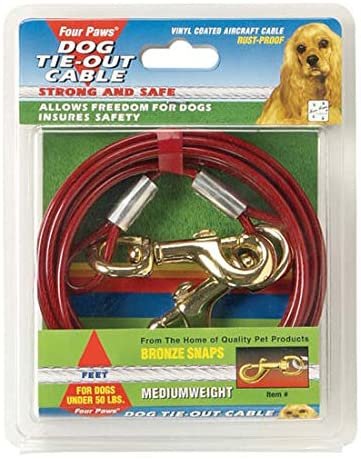 Four Paws Vinyl Coated Steel Cable Dog Tie Out – Medium Weight 15 ft.