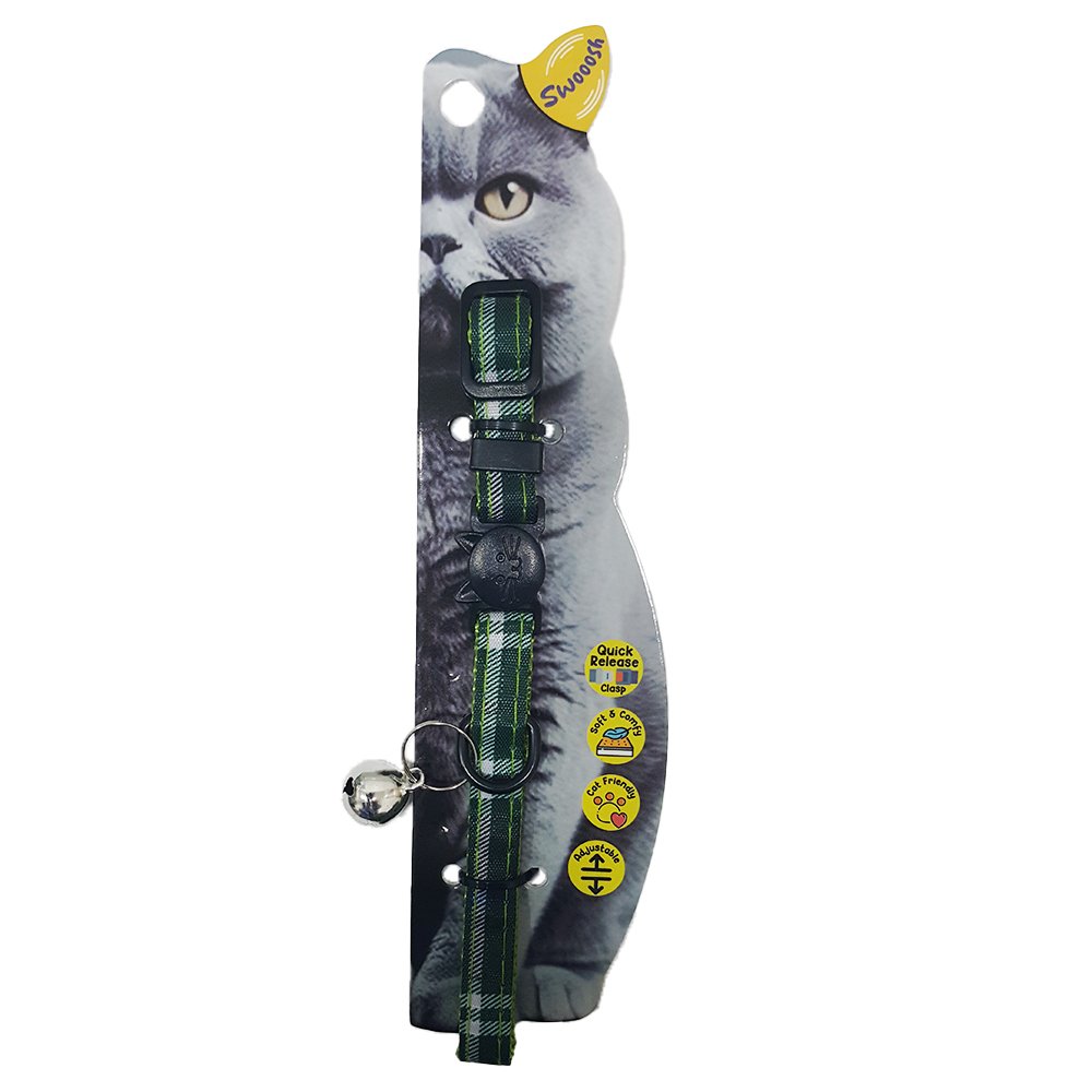 “The Swooosh Cat Nylon Cat Collar is a reliable and stylish accessory designed to enhance the cat safety and appearance of your feline companion. Here’s a detailed description of this cat collar: Safety Features: The Swooosh Cat Collar prioritizes your cat’s safety with essential features. It features a breakaway buckle designed to release under pressure, preventing choking or injury if your cat gets caught on an object or in a tight spot. Additionally, it includes a sturdy D-ring for attaching a leash or identification tags, allowing you to take your cat for supervised outdoor adventures while ensuring their security. Material: Constructed from high-quality nylon, this collar is both robust and gentle on your cat’s skin. Nylon is known for its durability, resistance to wear and tear, and ease of cleaning, making it a practical choice for cat collars. Size:- C-10mm 18/28cm Designed to cater specifically to cats, this collar is carefully sized to fit feline necks ranging from 18cm (7 inches) to 28cm (11 inches). This size range ensures a comfortable and secure fit for your cat, allowing them to move freely and comfortably.”